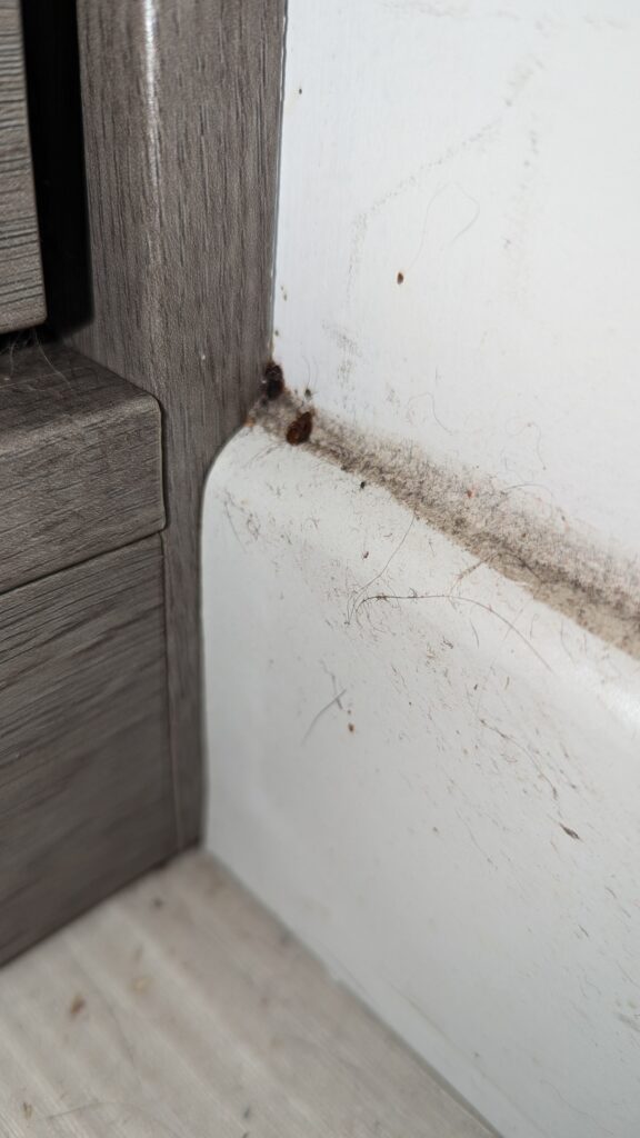 Sur cette photo, vous voyez une punaise de lit qui se promène tranquillement sur le mur. Cela signifie que le traitement va être compliqué et qu’il y a un risque que l’immeuble soit également infesté, vu les traces observées dans le logement. Les punaises de lit trouvent toujours des passages pour atteindre d’autres personnes et se multiplier
